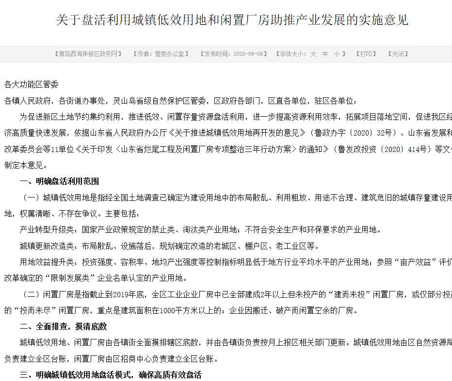 關于盤活利用城鎮低效用地和閑置廠房助推產業發展的實施意見
